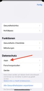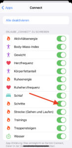 Wählen Sie die Schritte aus, die die Daten vom Armband/der Uhr-App an Health übertragen sollen.