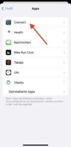 Um Ihre Smartwatch/Ihr Armband mit Health zu verknüpfen, öffnen Sie die Health-App und klicken Sie auf unser Foto in der oberen rechten Ecke – so gelangen Sie zu Ihrem Profil. Danach wählen Sie Apps aus.